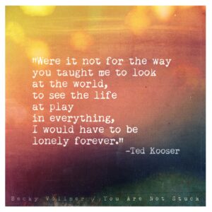 We share those bits with each other – memories we keep alive – in flowers and photographs and the feel of a shaky hand stroking your cheek. This is the way we teach one another the way to look at the world, to see the life at play in everything. And, because of this, I know we will not be lonely forever.